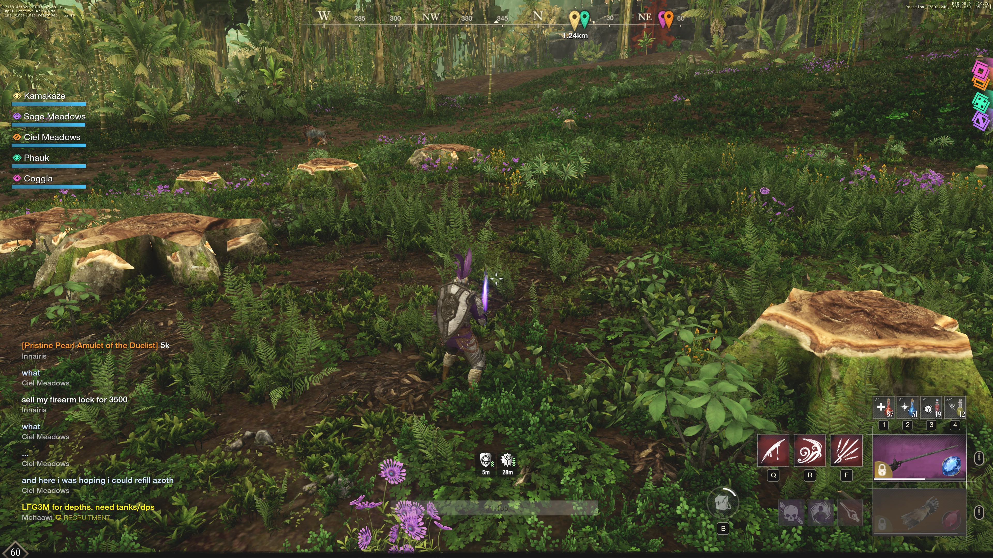 (if a bug) How did the issue effect your gameplay: Made it horrible to try to run around and gather or quest. I had to keep stopping until my framerate went up. I eventually just gave up and teleported back to Windsward, finished my community board quests and exited game.