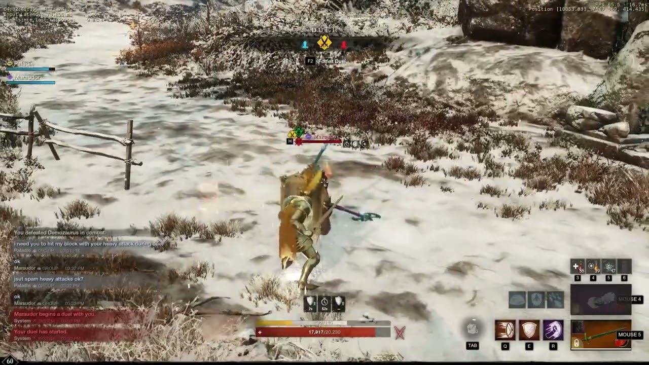 - You need just to use block during duel/PvP. Melee dd need just to attack your block with heavy attacks of warhammer/greataxe during duel.