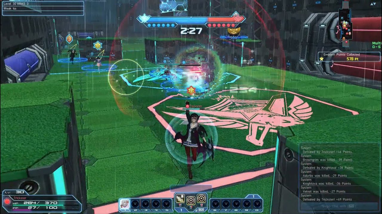 - Collecting Crests - Both teams would collect crests that are scattered on the stage, goldcrests are worth 5 points, silver crests are 3 points, bronze 1 point. Both teams would collect crests to fill the crest meter. Player’s can defeat opposing player to get a crest worth 3 points.