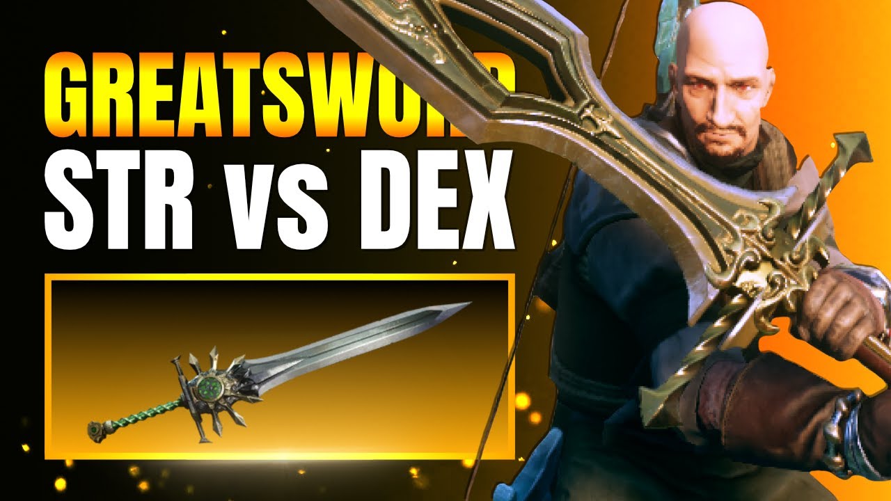 The damage would be about the same. I just do 250 dex, 50 str, since bow is my main. So whichever perk you want more. Either choice is a win with greatsword.